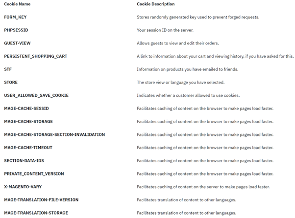 List of cookies we collect